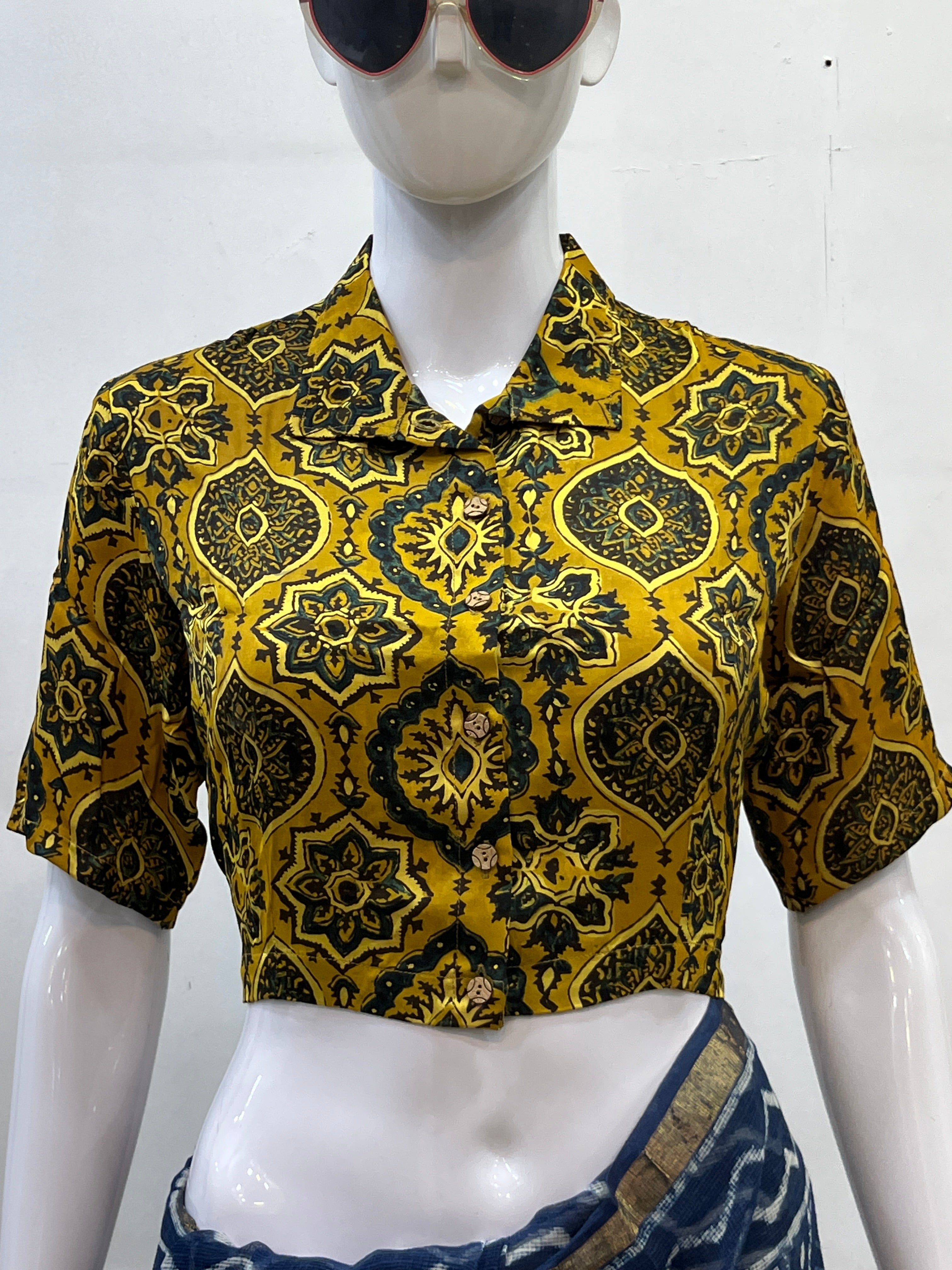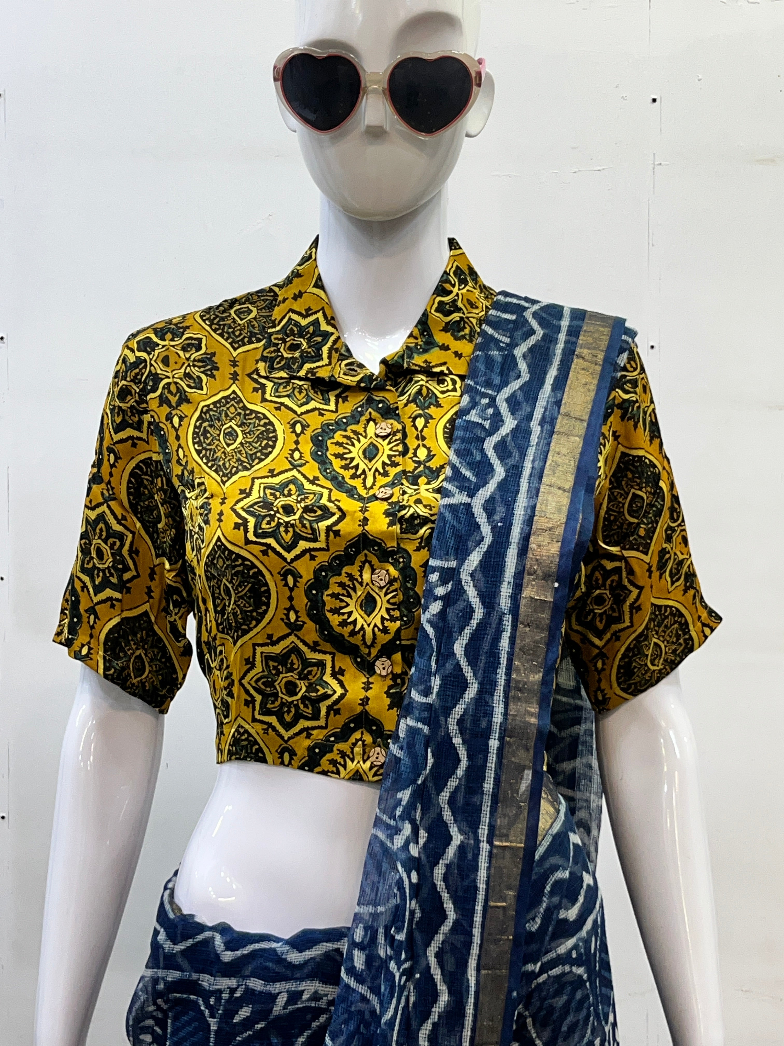Each piece is adorned with traditional Hand Block prints, meticulously hand-blocked by skilled artisans, celebrating the heritage of Gujrat’s centuries-old textile art. Whether paired with a saree, skirt, or jeans, these blouses bring a touch of artisanal charm to your everyday wardrobe.