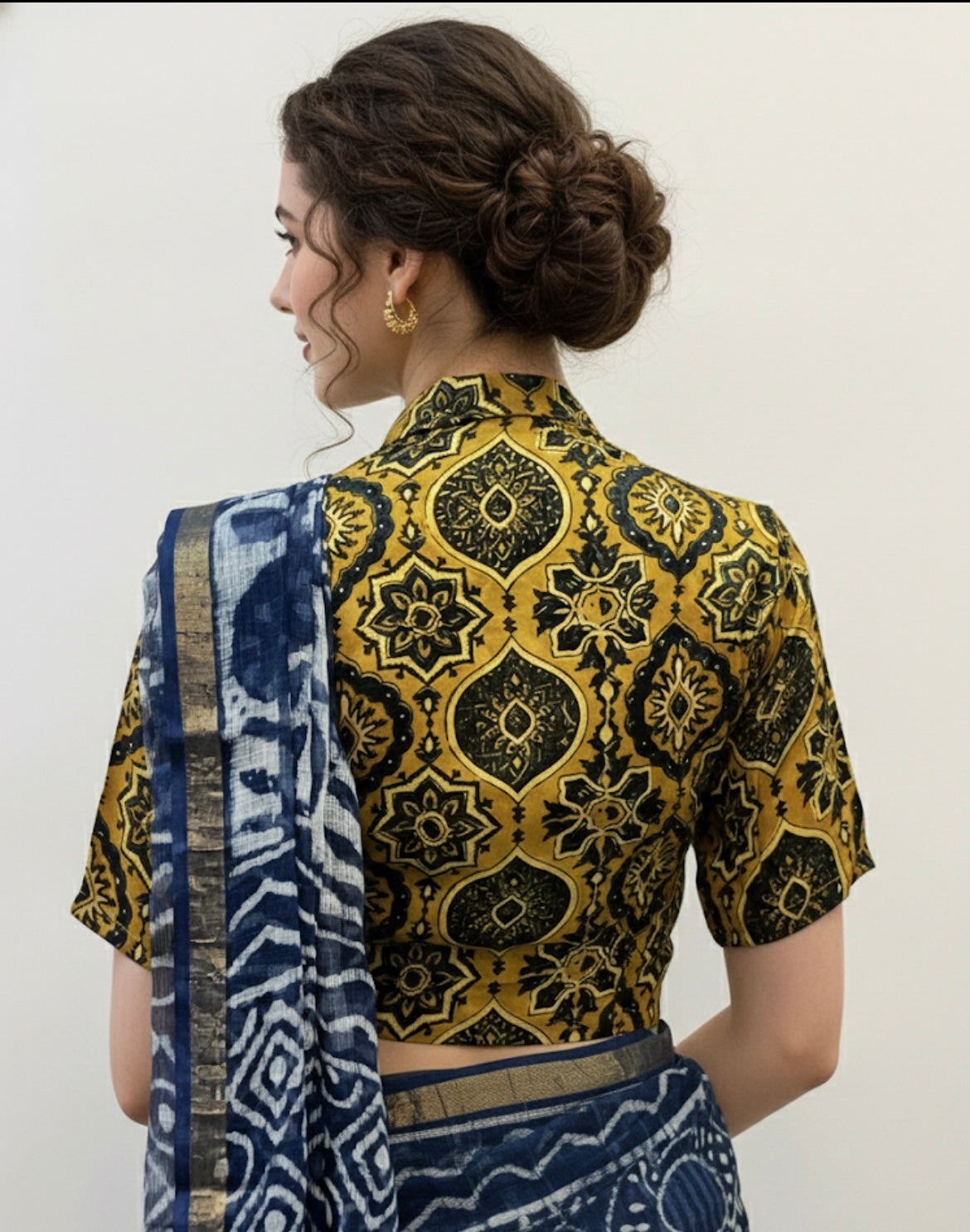 Experience timeless elegance with SomaRiya’s AJRAKH Hand block printed blouse. Made from Modal fabric, these blouses are incredibly soft, cool, lightweight, and exceptionally breathable — perfect for all-day comfort in any season.
