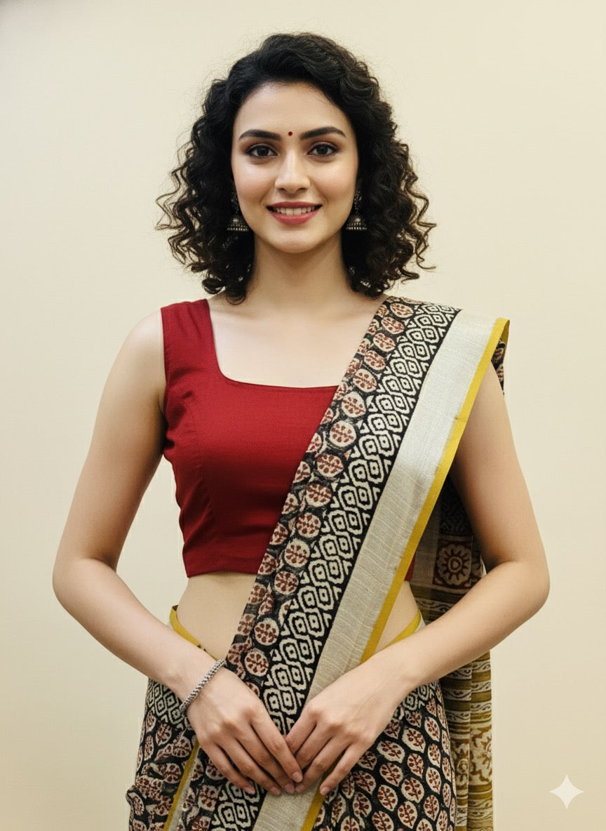 Experience timeless elegance with SomaRiya’s handcrafted cotton flex blouses. Made from 100% pure cotton and flex, these blouses are incredibly soft, lightweight, and exceptionally breathable — perfect for all-day comfort in any season.