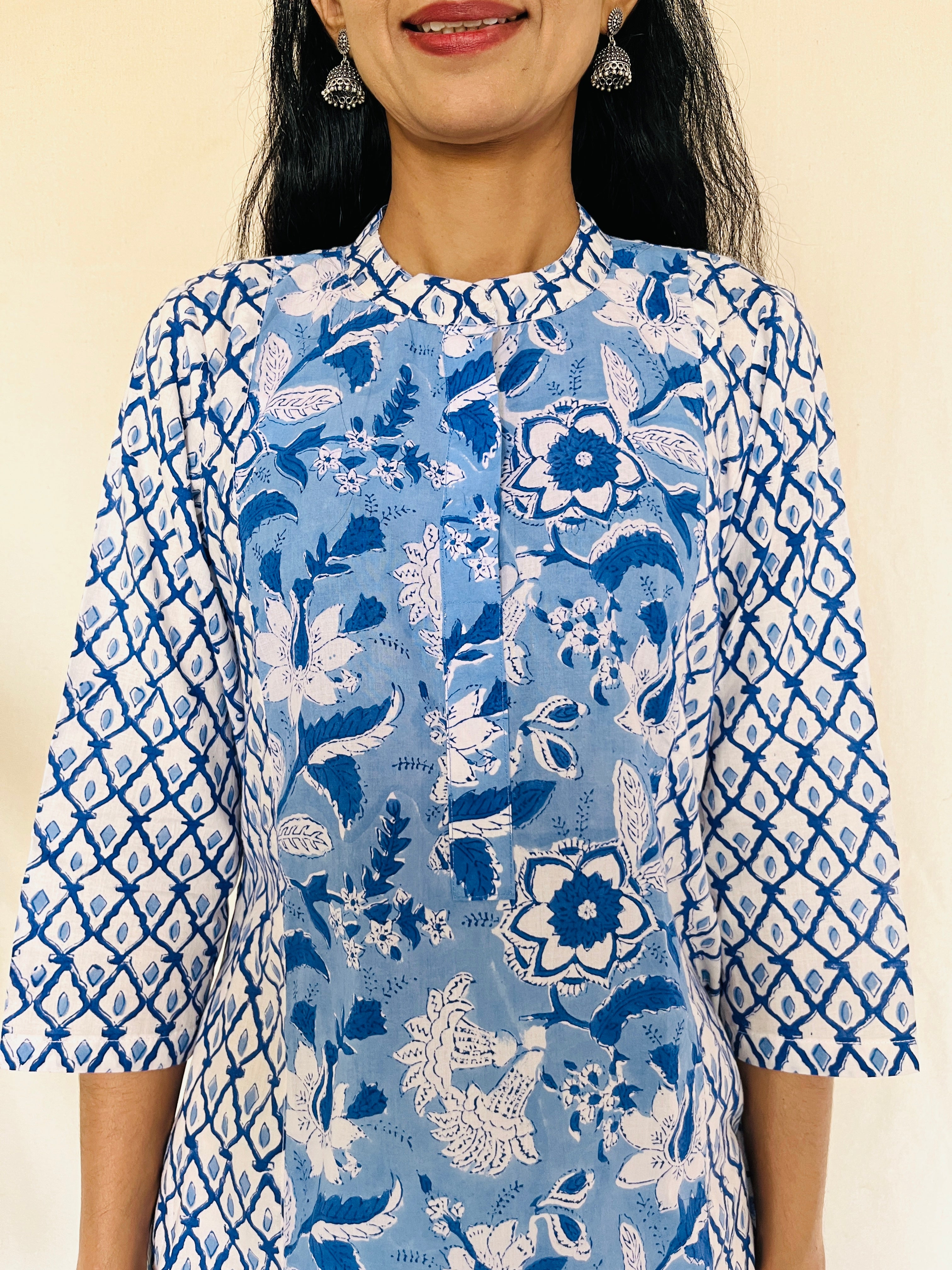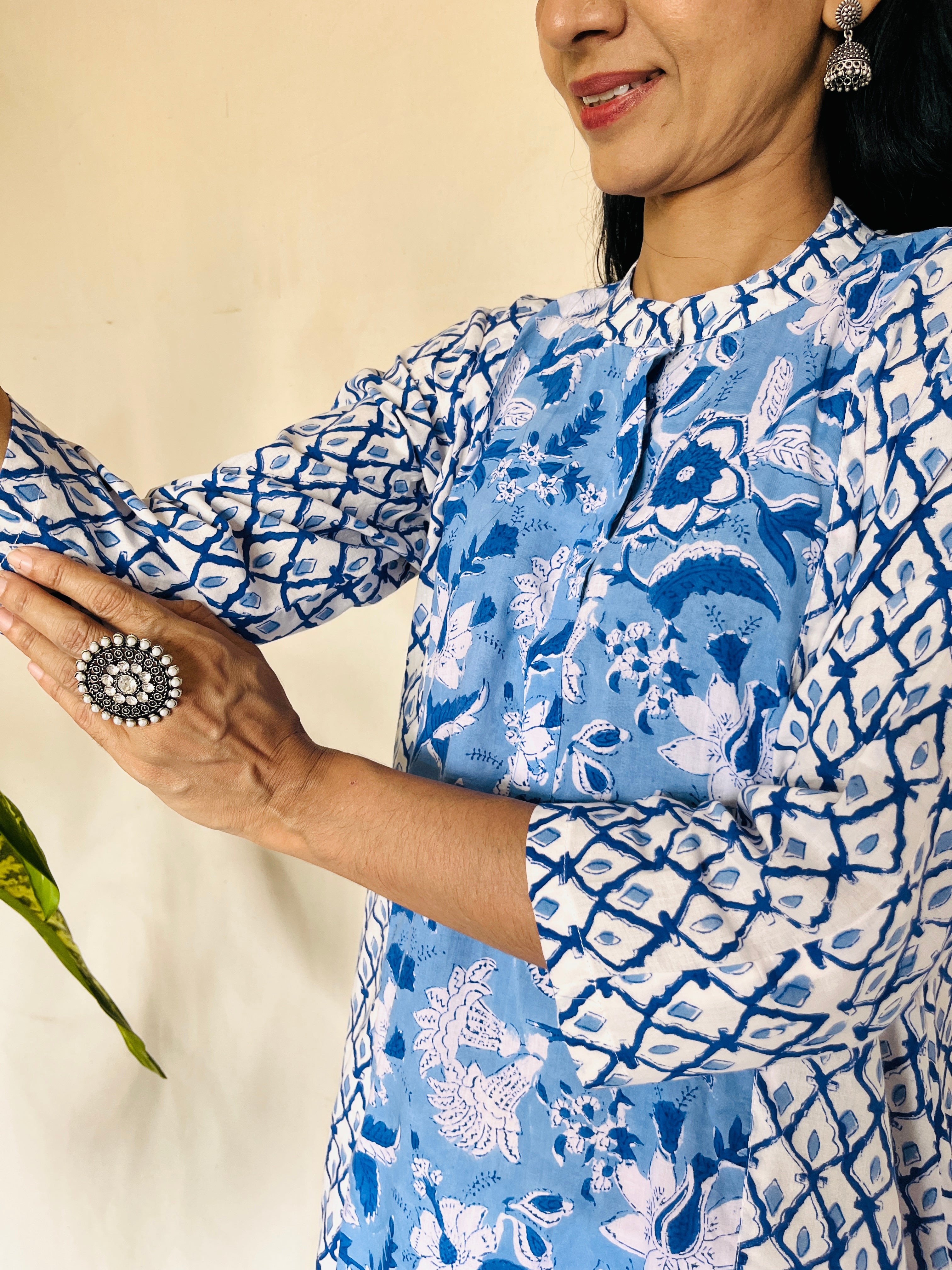 A Line Sanganeri Printed Kurti in Original Hand Block Print.