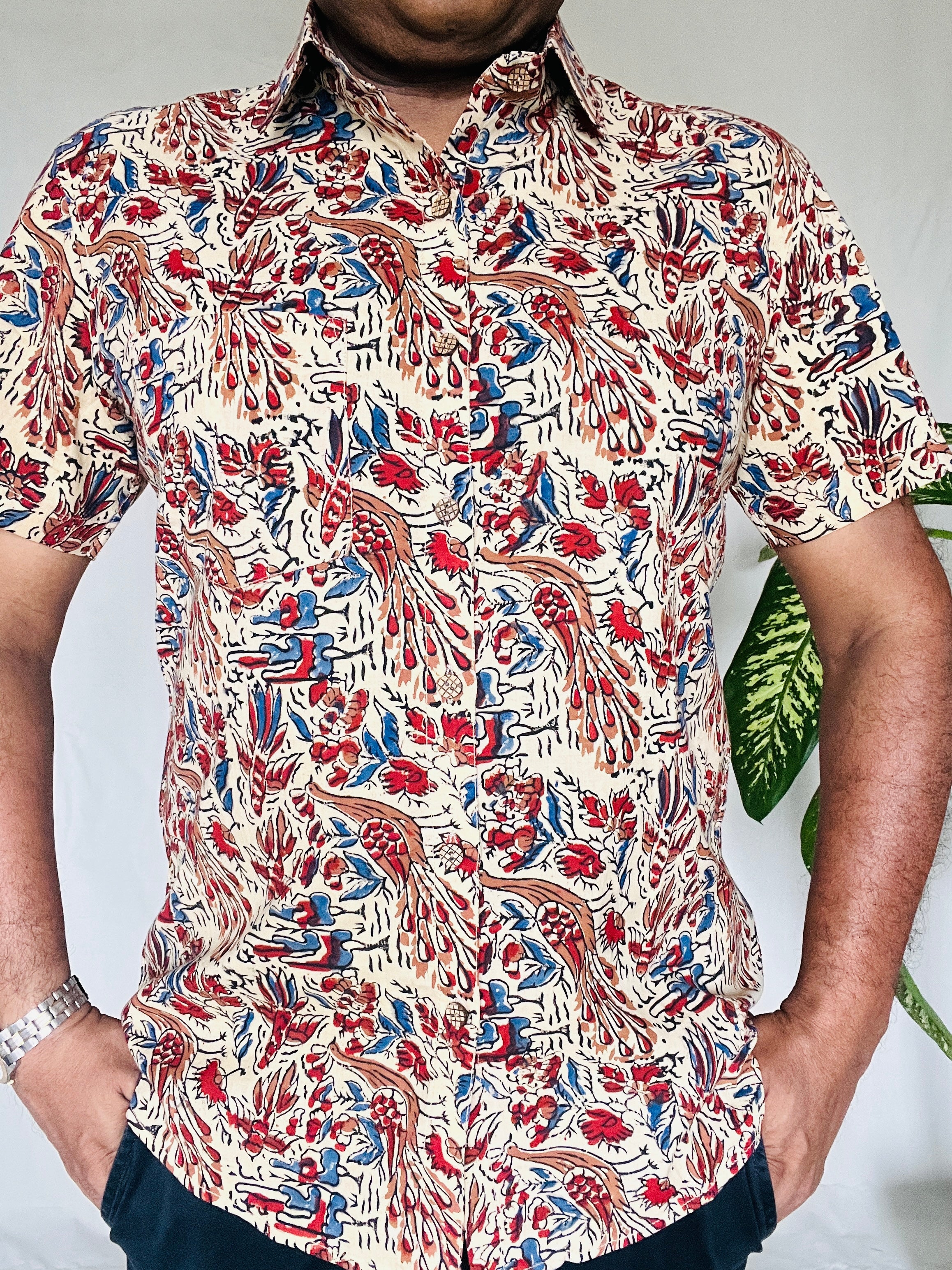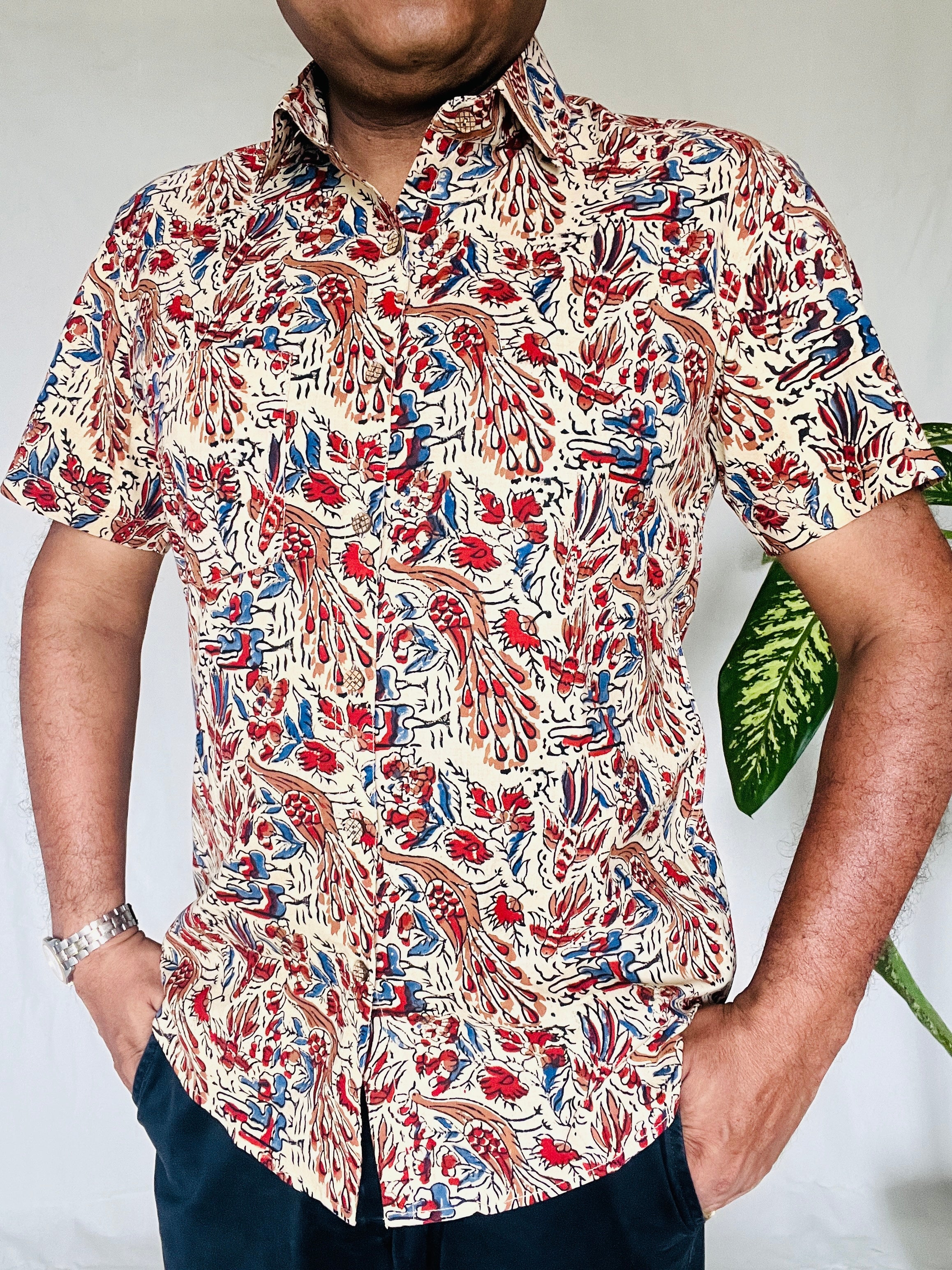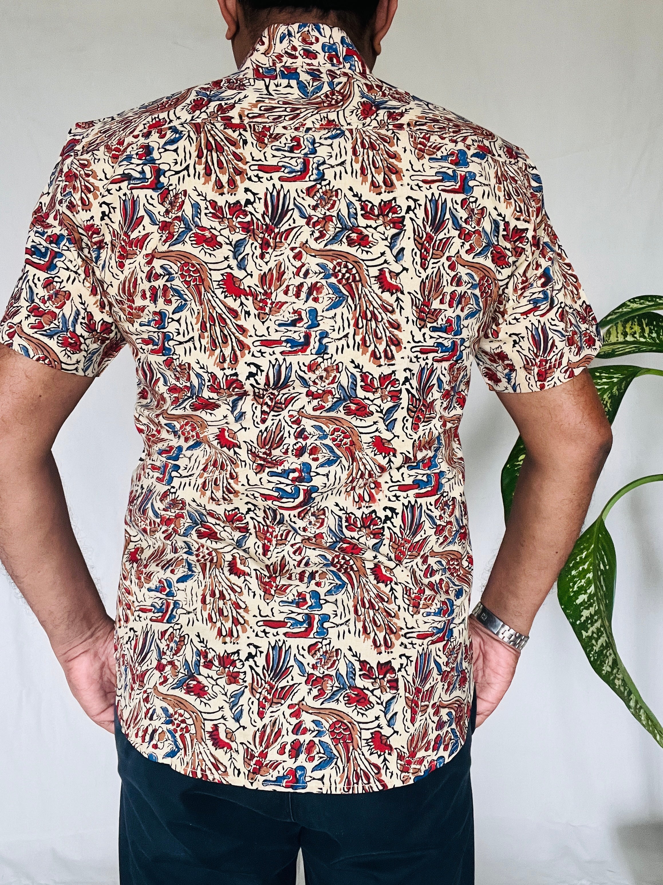 Men's KALAMKARI Hand Block Printed Slim Fit Shirt