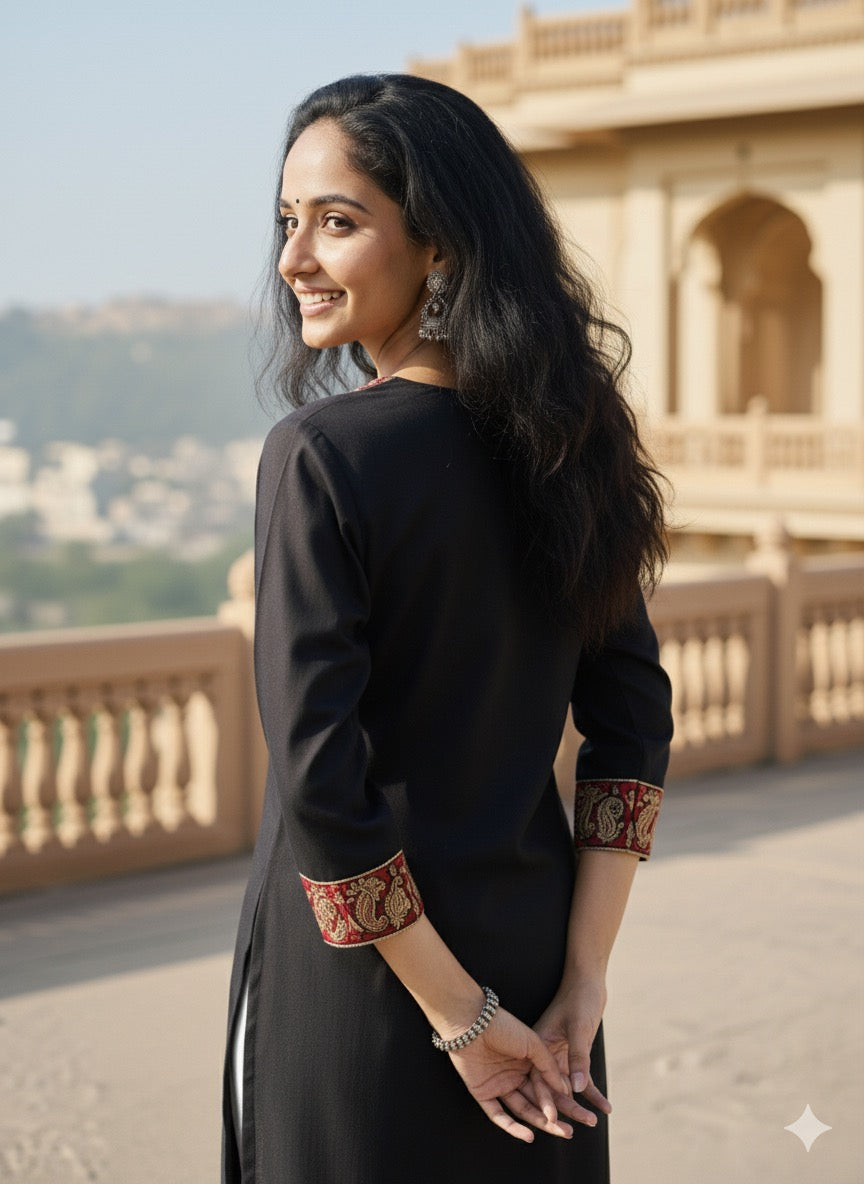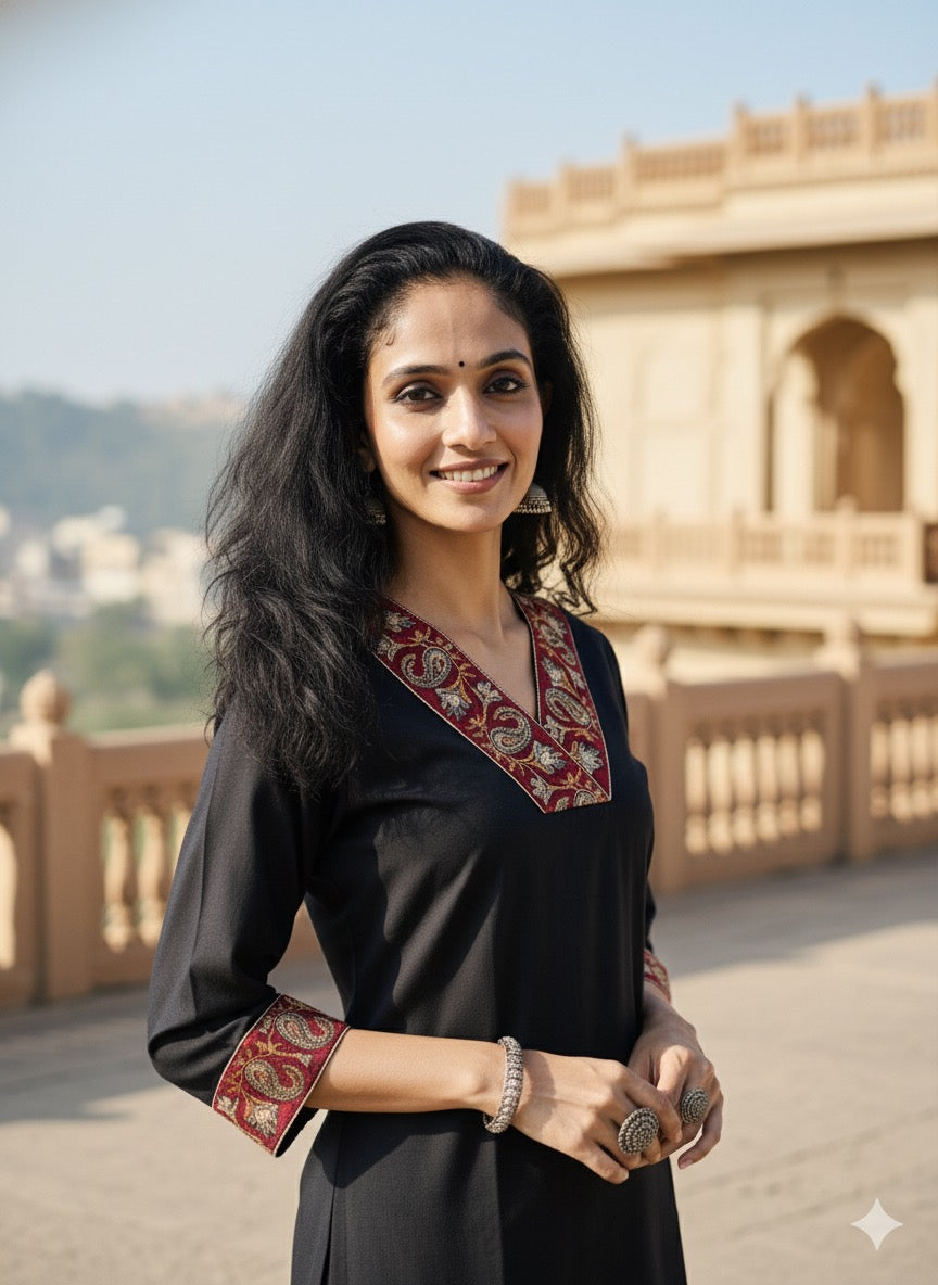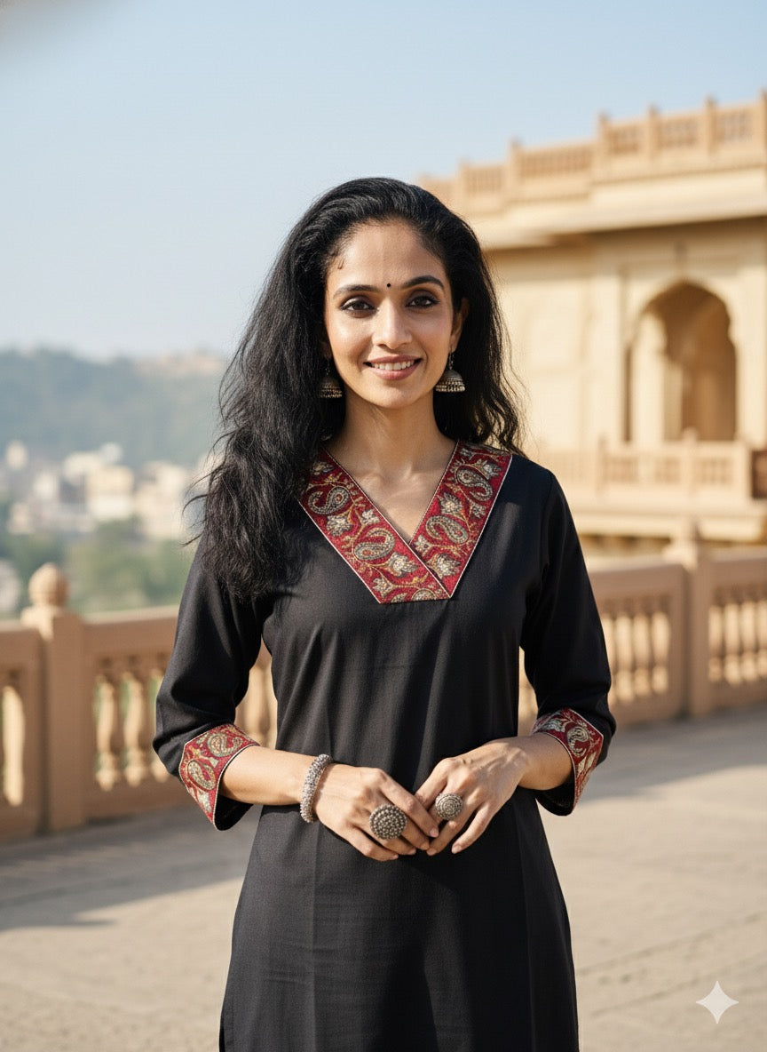 In the artful process of hand block-printing and stitching, variations are likely to come into existence. These irregularities are the hallmark of all handmade products and give each style a unique identity.Colours tend to be perceived differently depending on factors such as shot angles, lighting, background tones and colour temperatures. As a result, prints and colours may vary. Nevertheless, we strive to match the tones as close to the original product colours as possible.